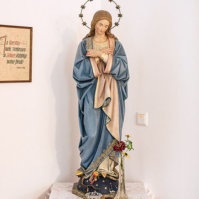 Das große Vorbild für unser Leben ist die Gottesmutter MARIA, deren Verehrung von Anfang an den Karmel geprägt hat. Als unsere Mutter und Schwester lehrt sie uns, mit Jesus zu leben, in Verborgenheit zu dienen, in der und für die Kirche den Heiligen Geist zu erflehen und in liebender Bereitschaft nach dem Willen des Vaters zu leben.